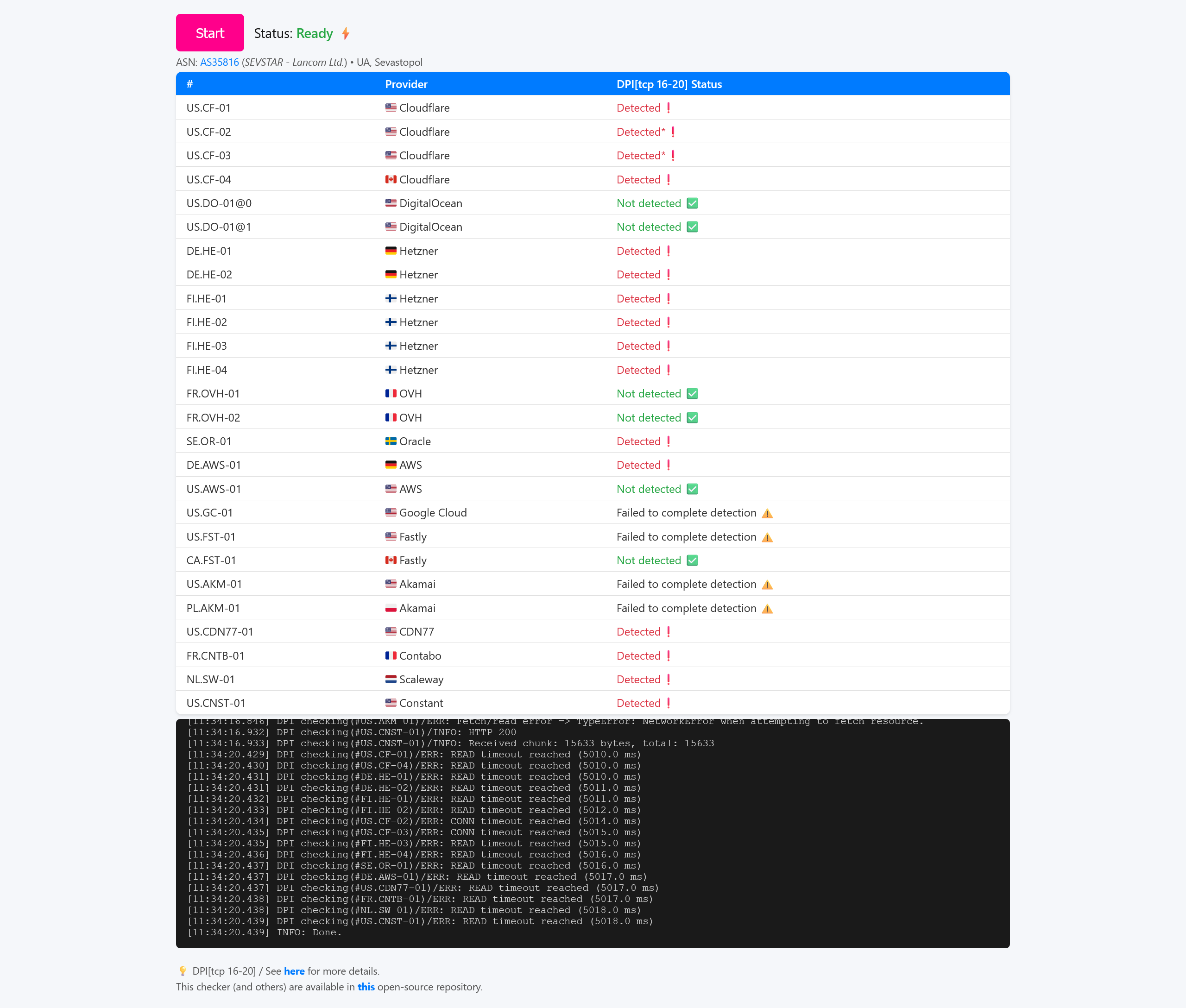 Прям блокируют. И не только Cloudflare. 16-20кб пролетает, а дальше сброс. И попробуй докажи что ты не верблюд. Пинги-трейсы будут проходить - а значит "у нас всё работает, это проблема на другой стороне". И делает это РКН со своими волшебными коробочками, а не провайдер.EvgenK писал(а):потому что он (как и еще половина всех сайтов в инете) за cloudflare, который не блокируют, а "замедляют".
